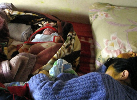 | Căn phòng nhỏ đơn sơ của chị D. , nữ Tiến sỹ đang giảng dạy tại một trường Đại học lớn ở Hà Nội luôn ấm áp, rộn tiếng khóc cười trẻ em. Ba mẹ con chị nằm gọn trên chiếc giường nhỏ, phía trên đầu giường, hình ảnh anh N., chồng chị D. tươi cười bên cô dâu xinh đẹp. Cậu anh (bên trái) ăn tốt hơn nên "xỉnh" hơn cậu em (bên phải). |