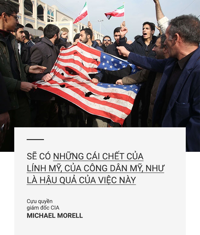 Cựu giám đốc CIA khác trong thời Obama là ông Michael Morell thậm chí còn thẳng thừng hơn: "Sẽ có những cái chết của lính Mỹ, của công dân Mỹ, do hậu quả của việc này. Tôi cho rằng chúng ta cũng hết hy vọng giữ Iraq nằm ngoài tầm ảnh hưởng của Iran".