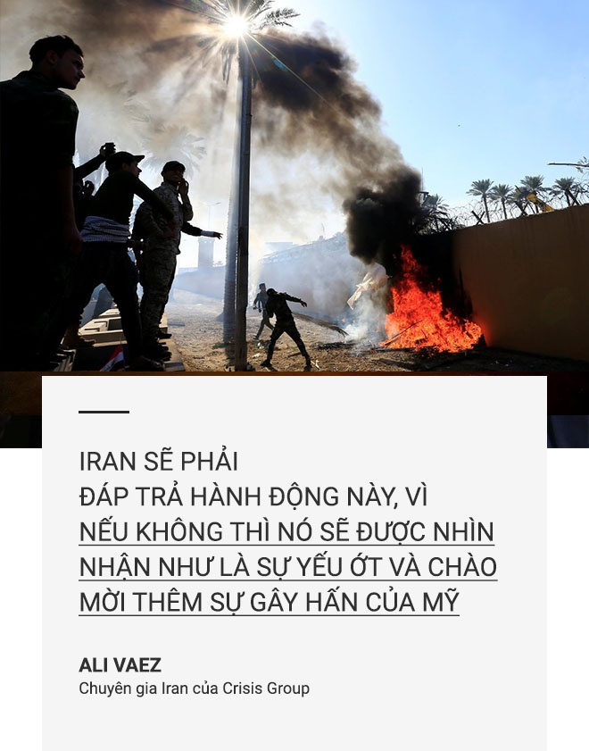 "Đây là một chế độ thực dụng chứ không phải một chế độ tự sát, và sự thực dụng đến từ những lãnh đạo cao nhất. Chủ nghĩa thực dụng đó sẽ không thay đổi, nhưng Iran sẽ phải đáp trả hành động này, vì nếu không thì nó sẽ được nhìn nhận như là sự yếu ớt và chào mời thêm sự gây hấn của Mỹ. Nhưng việc đáp trả là không thể tránh khỏi, dù nguy cơ tính toán sai lầm là rất cao", ông Vaez nhận định.
