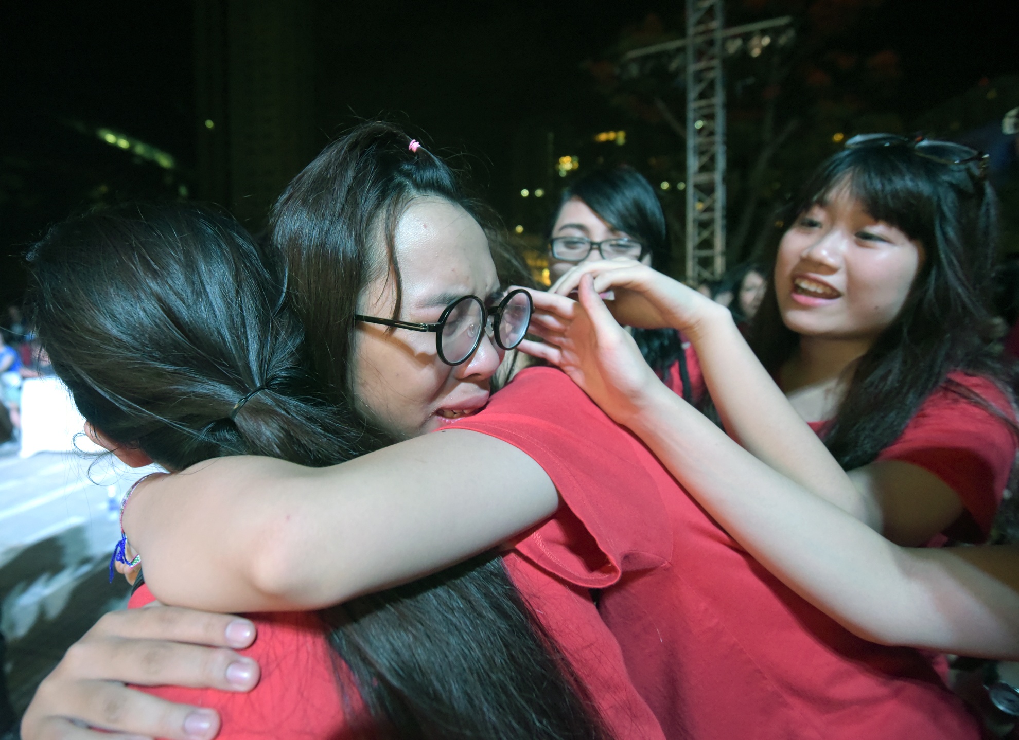 | Nhiều bạn nữ không ngăn nổi cảm xúc khi đêm hội mới bắt đầu diễn ra vài phút. |