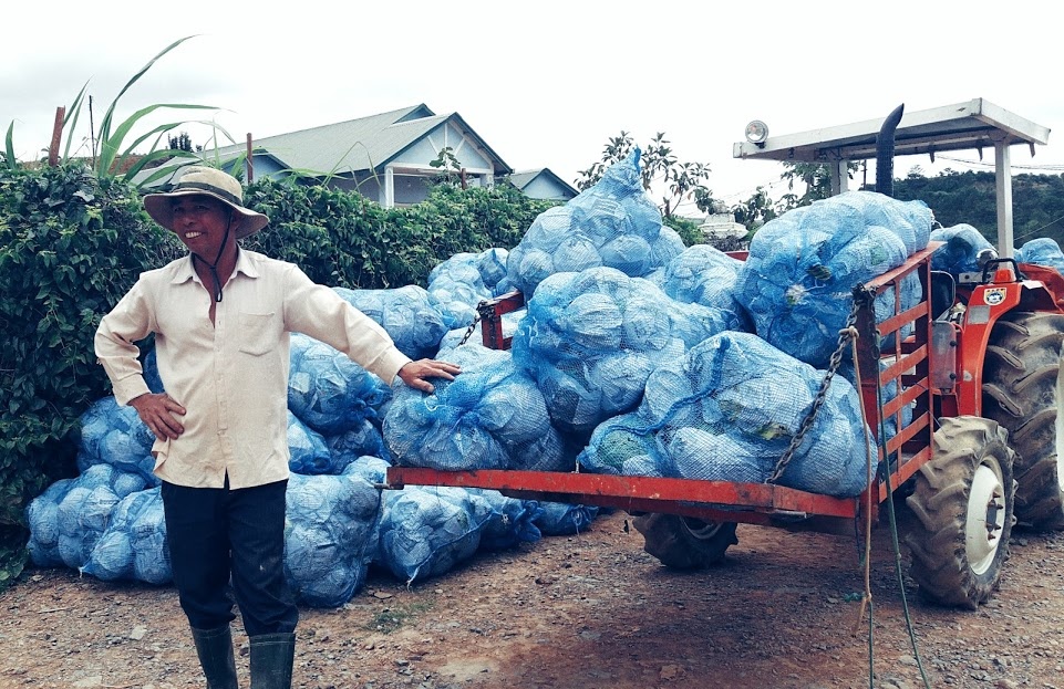 Sau khi thu hoạch và xử lý một vài bước thủ công, cải được gói kỹ trong lớp giấy và cẩn thận đưa lên xe, vận chuyển đến điểm thu mua nông sản.