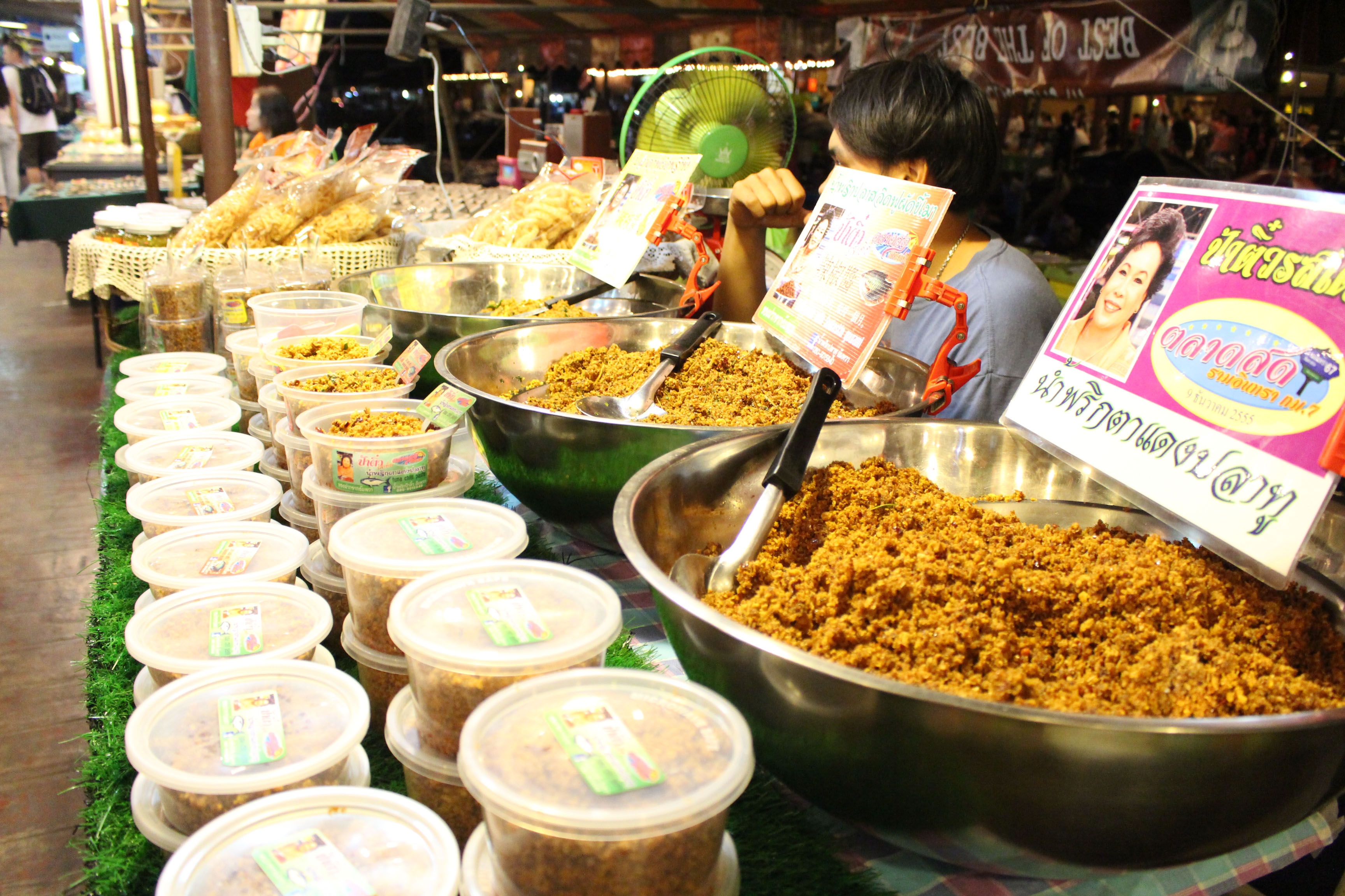 | Chợ bán rất nhiều hải sản và các món ăn truyền thống Thái. |