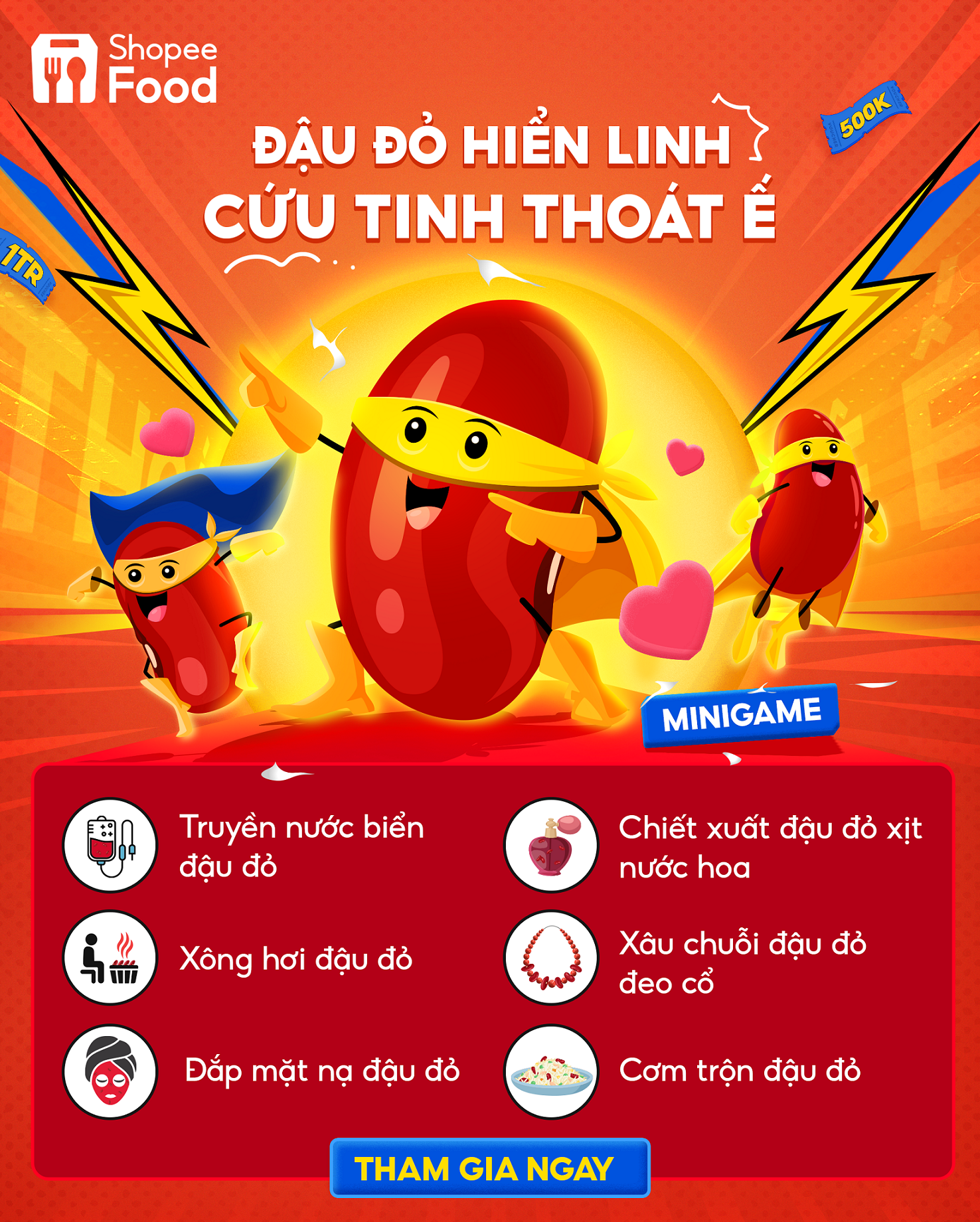 Để tăng cơ hội thoát ế, lại “bế” thêm voucher khủng của ShopeeFood, bạn hãy tham gia minigame “Đậu đỏ hiển linh - cứu tinh thoát ế”, diễn ra từ hôm nay đến 23h59 ngày 8/8. Cách thức tham gia đơn giản: