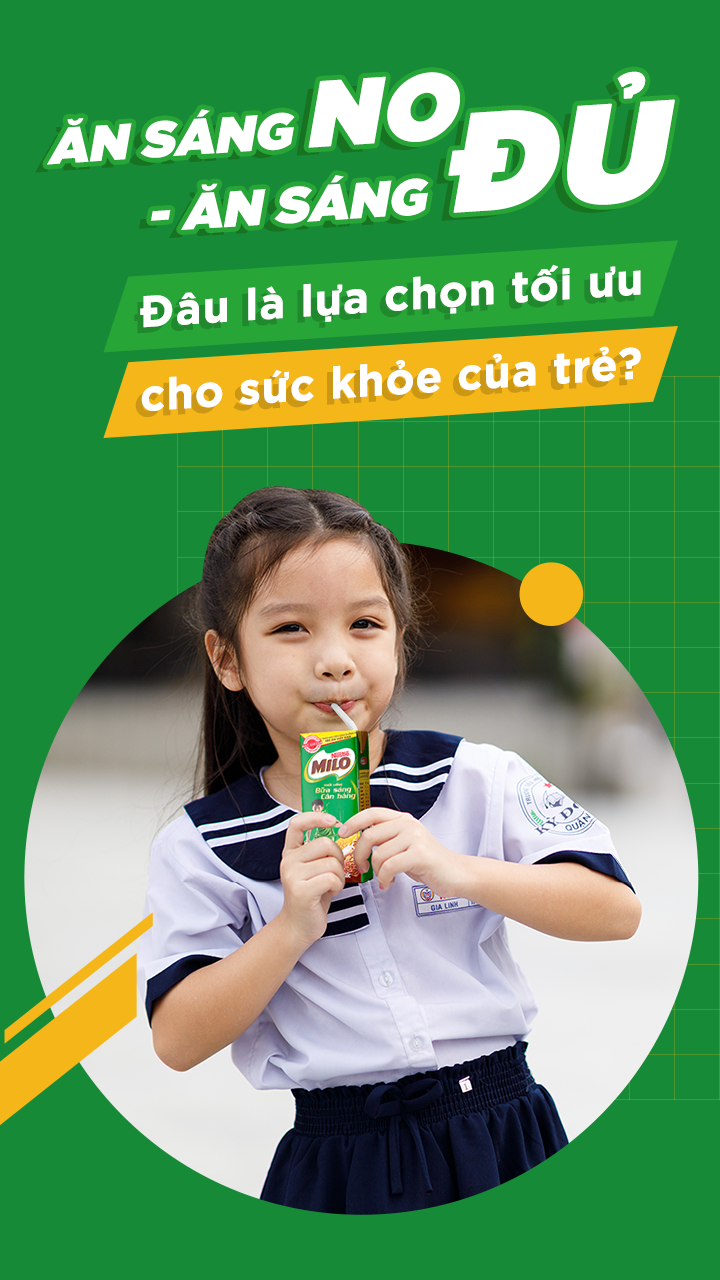 Ngoài một thực đơn đủ và khoa học cho bữa sáng, việc bổ sung một hộp sữa Milo Bữa sáng cân bằng sẽ giúp bố mẹ cùng con yên tâm hơn, cung cấp đầy đủ các dưỡng chất cần thiết. Không chỉ giúp trẻ tập trung và tràn đầy năng lượng cho một ngày dài, mà về lâu về dài, cơ thể của trẻ sẽ phát triển khoẻ mạnh về cơ, xương, hệ vận động.