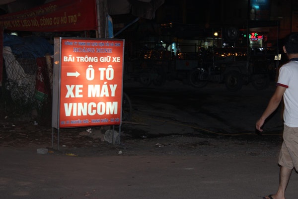 | ... trong khi một điểm trông giữ xe ô tô xe máy có treo biển Vincom phía đối diện lại rất ế ẩm. |