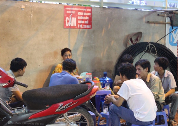 | Nhiều quán nước cũng nhanh chóng mọc lên trong các lối ngõ gần Royal City, bất chấp biển cấm của chính quyền. |
