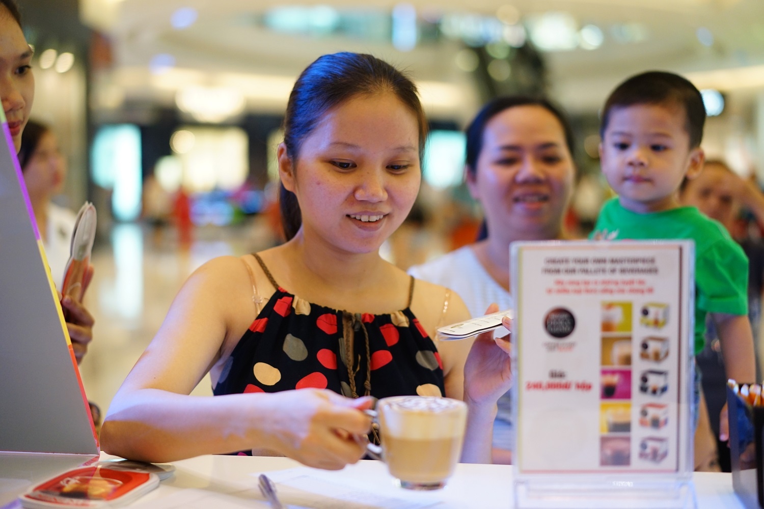 Đặc biệt, hoạt động nhận được nhiều quan tâm hơn cả trong suốt 3 ngày diễn ra sự kiện chính là cơ hội trải nghiệm chiếc máy pha cà phê Mini Me - sản phẩm ra mắt lần đầu tiên tại Việt Nam cùng với những viên cà phê nén thông minh. “Điểm mình thích nhất ở máy Mini Me là thiết kế nhỏ gọn, thao tác sử dụng rất đơn giản và dễ dàng. Ly Cappucinno mình yêu thích đã được hoàn thành ngay sau một phút mà hương vị vẫn đậm đà giống hệt ở tiệm” - Bạn Diệu Linh (quận 1, TP HCM) chia sẻ.