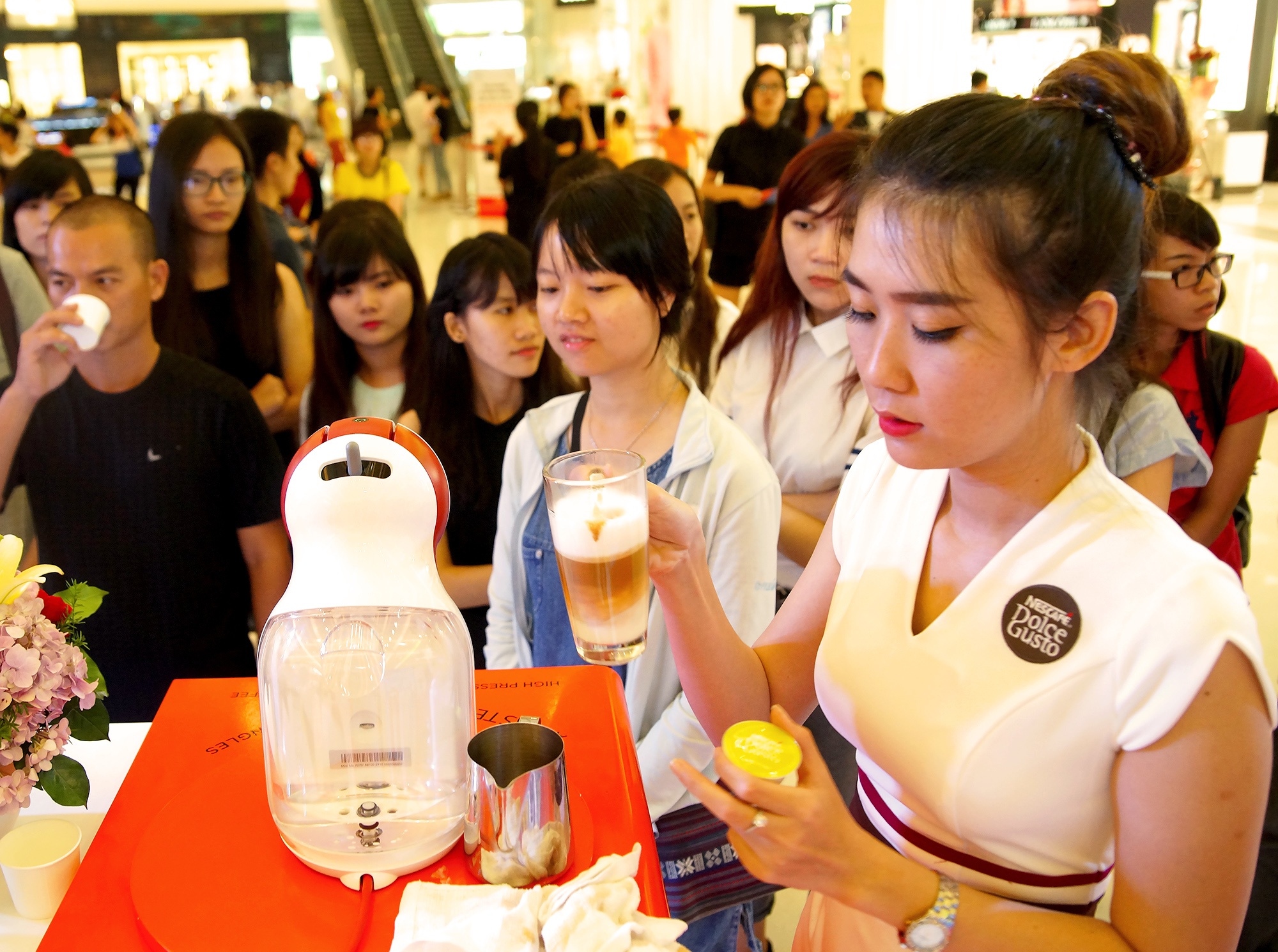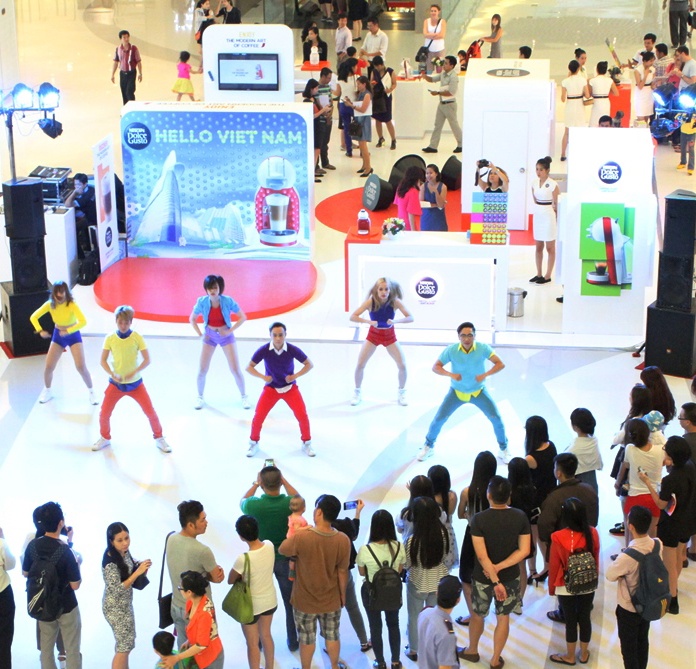 Tại đây, tất cả mọi người cùng trải nghiệm một lối thưởng thức cà phê hoàn toàn mới mẻ đúng với tinh thần nghệ thuật cà phê đương đại của NESCAFÉ Dolce Gusto. Được giới thiệu tại chuỗi siêu thị, trung tâm thương mại lớn tại TP HCM và Bình Dương như Diamon Plaza, Crescent Mall, hệ thống Aeon Mall, nay người tiêu dùng có thể tự tay tạo ra tách cà phê với hương vị, màu sắc tinh tế đi cùng chất lượng tuyệt hảo nhanh gọn tại bất cứ không gian nào.
