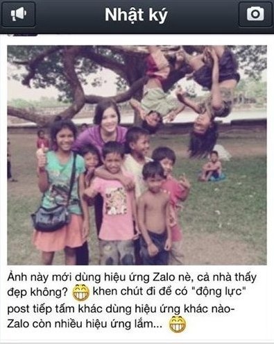 Zalo là một ứng dụng miễn phí thân thiện với người dùng Việt và khá chịu khó tích hợp nhiều tính năng. Ngoài các tính năng chính như gọi và nhắn tin thoại miễn phí, các sao Việt còn thường xuyên dùng bộ ảnh động (sticker) để sáng tạo những bức ảnh hài hước, giao lưu cùng fan như Angela Phương Trinh, Văn Mai Hương, Quang Lê, Ngọc Trinh, Minh Vương, Lý Nhã Kỳ… Đặc biệt mẫu Tây Andrea Aybar có vẻ là “fan cuồng” khi cô đăng rất nhiều bức ảnh ngộ nghĩnh với sự hỗ trợ của sticker.