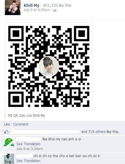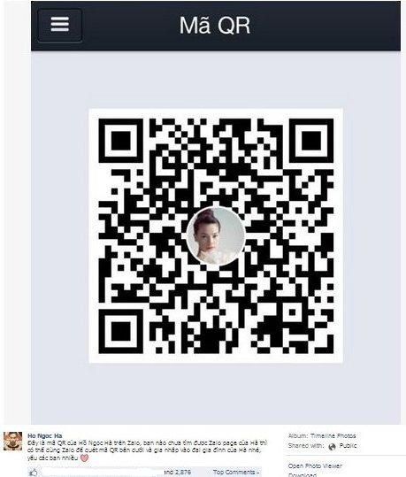 Trào lưu QR code từng làm giới trẻ mê mệt cũng nhanh chóng trở thành trợ thủ đắc lực cho các sao nhằm dễ dàng hút thêm fan cho trang cá nhân. Phương thức bảo mật chỉ cần quét mã mà không cần công khai số điện thoại của QR code rõ ràng giúp việc tìm kiếm, kết bạn trở nên nhanh và an toàn hơn hẳn. Hồ Ngọc Hà, V.Music, 365, Khởi My hay Lâm Chấn Huy… đều công khai mã QR cho “nhà” mới xây trên Zalo.