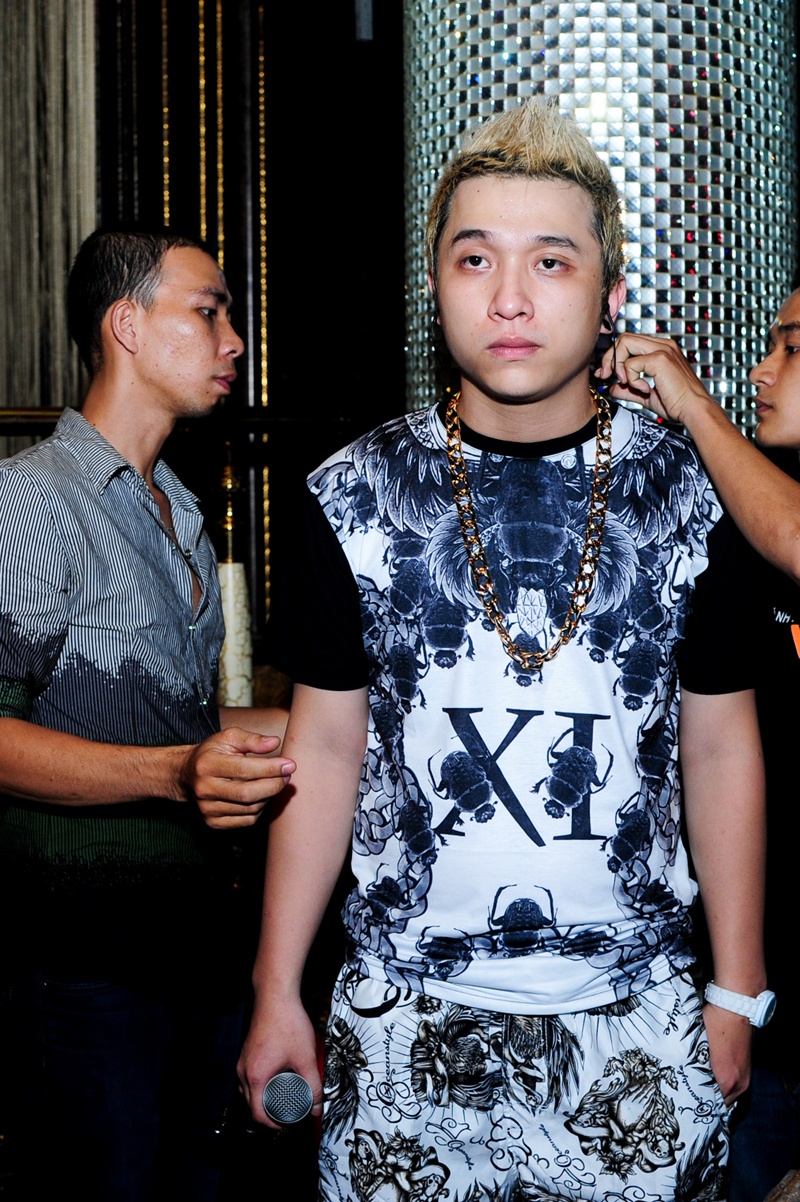 Phía sau cánh gà, anh được các trợ lý trợ giúp phần tạo kiểu tóc và chỉnh đốn lại trang phục.