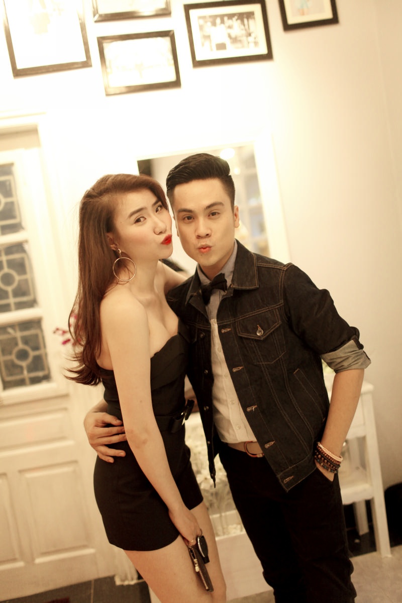 | Người mẫu Huyền Thư và MC Thái Dũng thân thiết bên nhau trong sự kiện. |