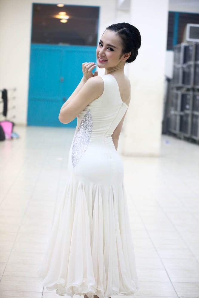 | Lần đầu tiên thử sức với dancesport và tham gia 1 chương trình được tường thuật trực tiếp, "bà mẹ nhí" không giấu sự hồi hộp. Cô tâm sự về quãng thời gian luyện tập của mình: "Tôi mới tập được mấy ngày nên cảm thấy rất hồi hộp. Dancesport khó hơn những vũ đạo trước đây tôi học nhiều. Tôi thường học nhảy một mình và các động tác không quá phức tạp. Nhưng tôi cảm thấy rất yêu thích và thú vị với dancesport". |