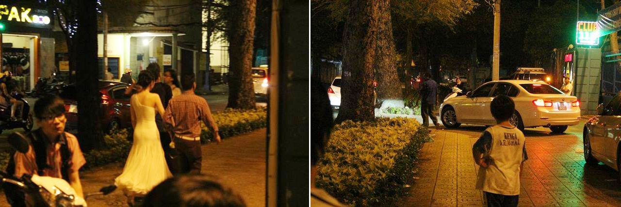| Angela Phương Trinh lặng lẽ cùng bạn bè ra về sau khi tiết mục bị cắt vào giờ chót. |