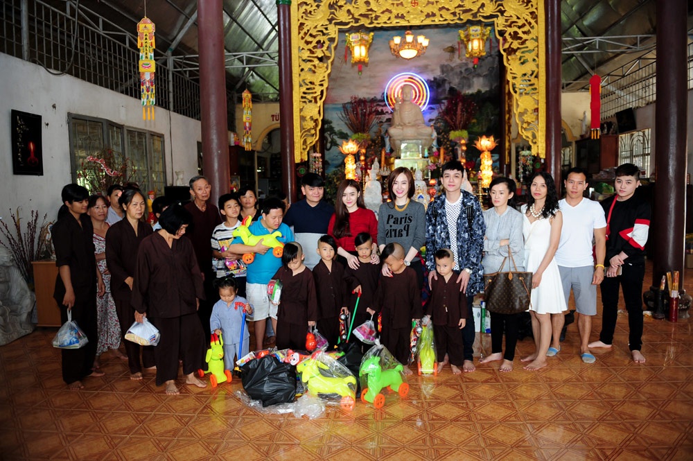 | Ngoài tặng quà, cô còn tặng tiền cho những bảo mẫu trong chùa. |