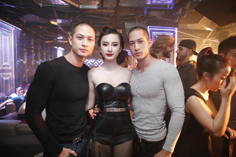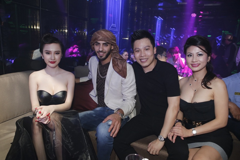 | Tối 12/9, Angela Phương Trinh có mặt tại một quán bar cùng Omar - trai đẹp bị trục xuất và ba anh em nhà họ Lưu để tham dự một buổi khai trương quán bar tại Sài Gòn. Khách mời ngoại quốc diện trang phục rất đơn giản với áo thun, sơ mi. Trong khi đó ‘’bà mẹ nhí’’ diện một chiếc đầm được thiết kế cầu kỳ và gợi cảm, đúng với phong cách mà cô thường chọn khi xuất hiện tại các sự kiện làng giải trí. |