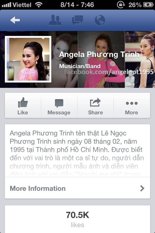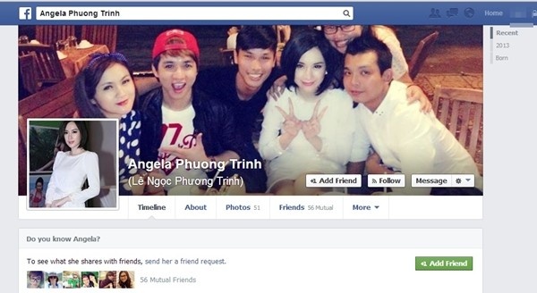 | Facebook mà Angela Phương Trinh đang sử dụng |