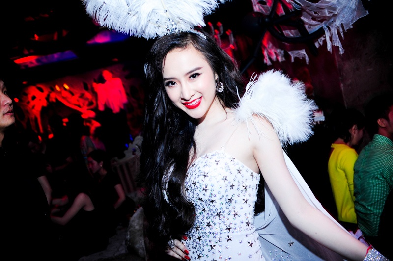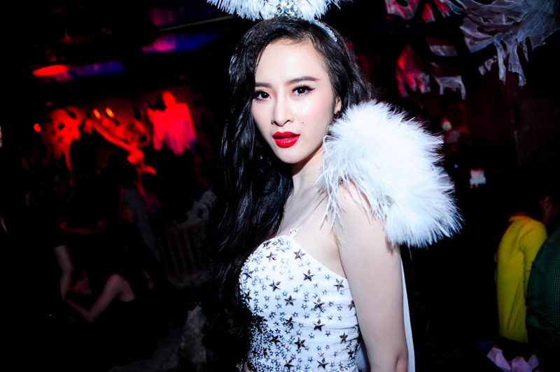 | Angela Phương Trinh buông tóc dài, diện chiếc váy ôm đính saquin hình ngôi sao trông rất sexy. Nữ diễn viên hóa thân thành miêu nữ xinh đẹp với những đôi cánh thiên thần trong ngày Halloween. |