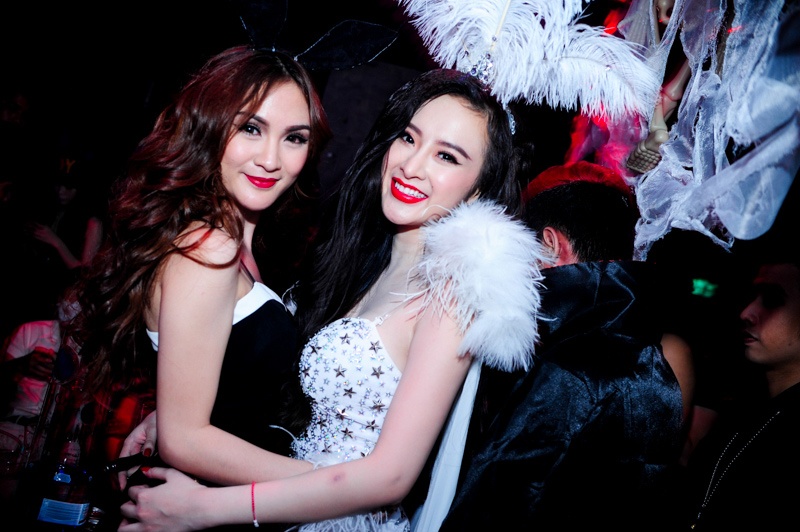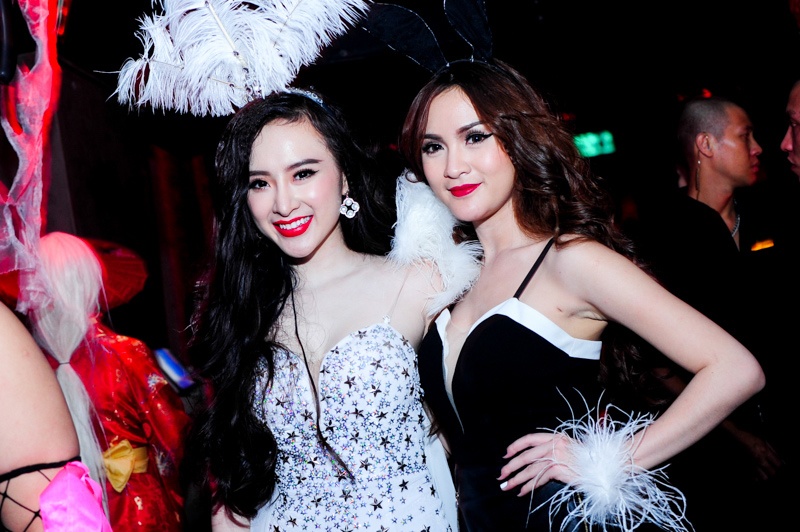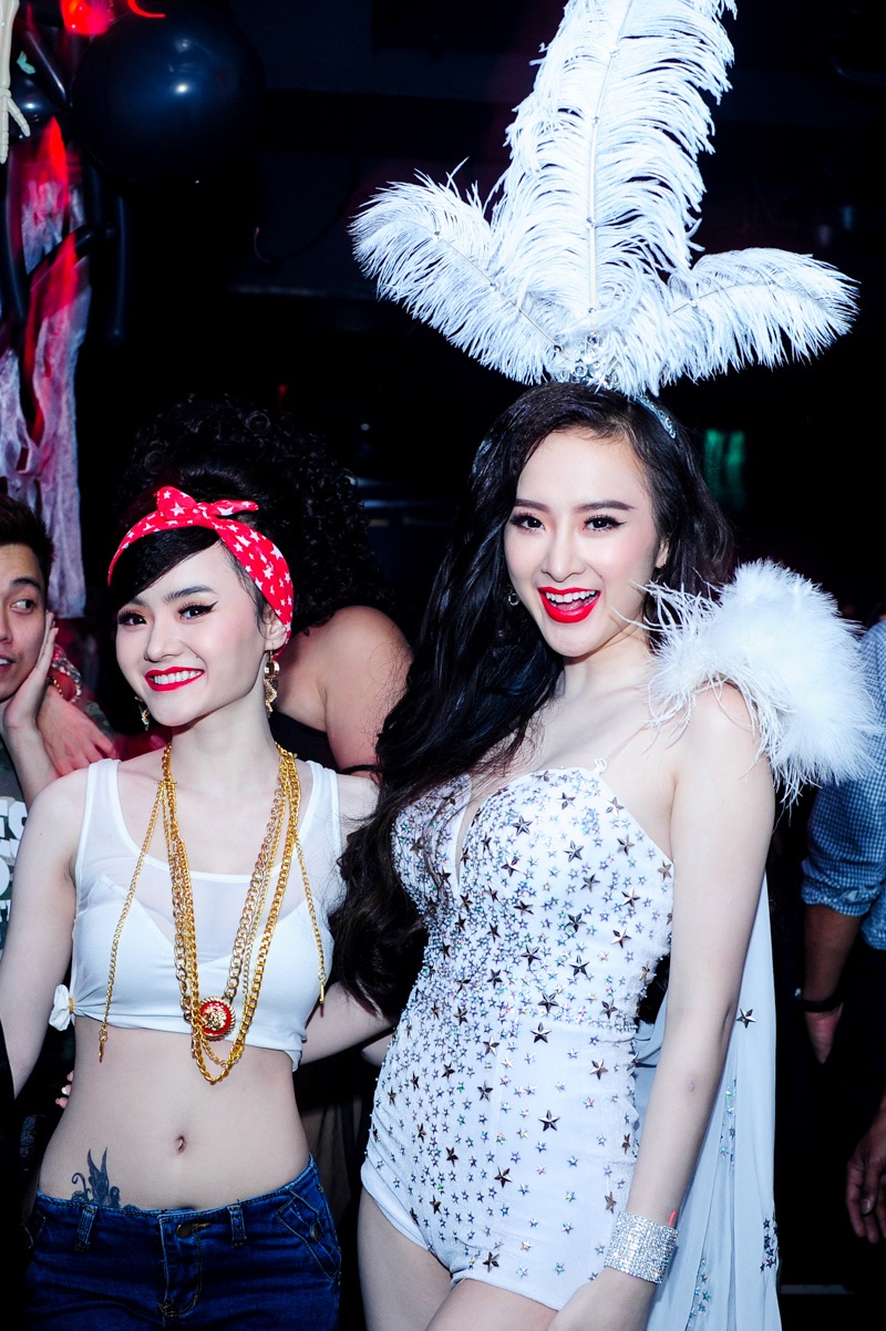 | Hai người đẹp đều chuộng phong cách sexy trong đêm hóa trang. |