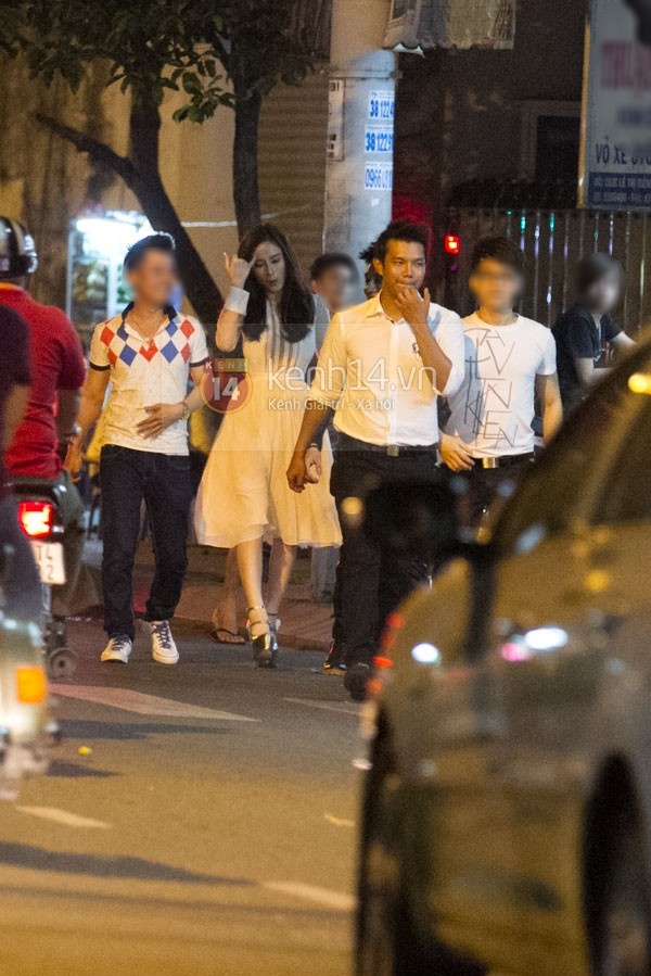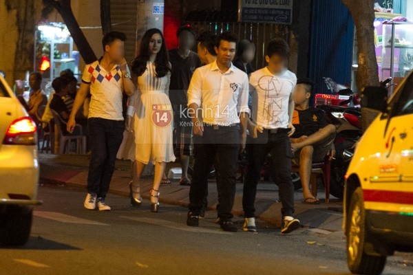 | Sau khi ăn tối xong, Angela Phương Trinh cùng những người bạn đã vào một quán bar ở quận 1. |