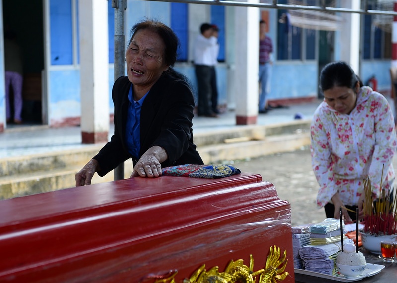 | Người thân anh Lê Thanh Nghị khóc thương bên quan tài anh. |