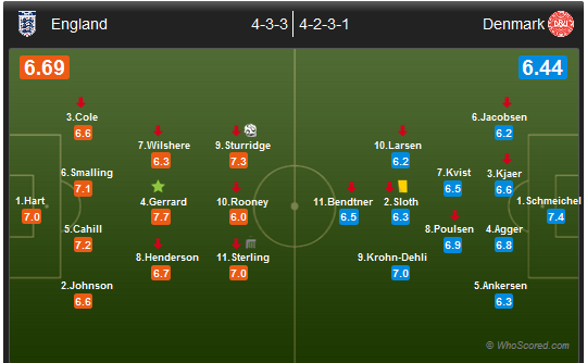 | Chấm điểm đội hình ra sân. Rooney chơi tệ nhất. |