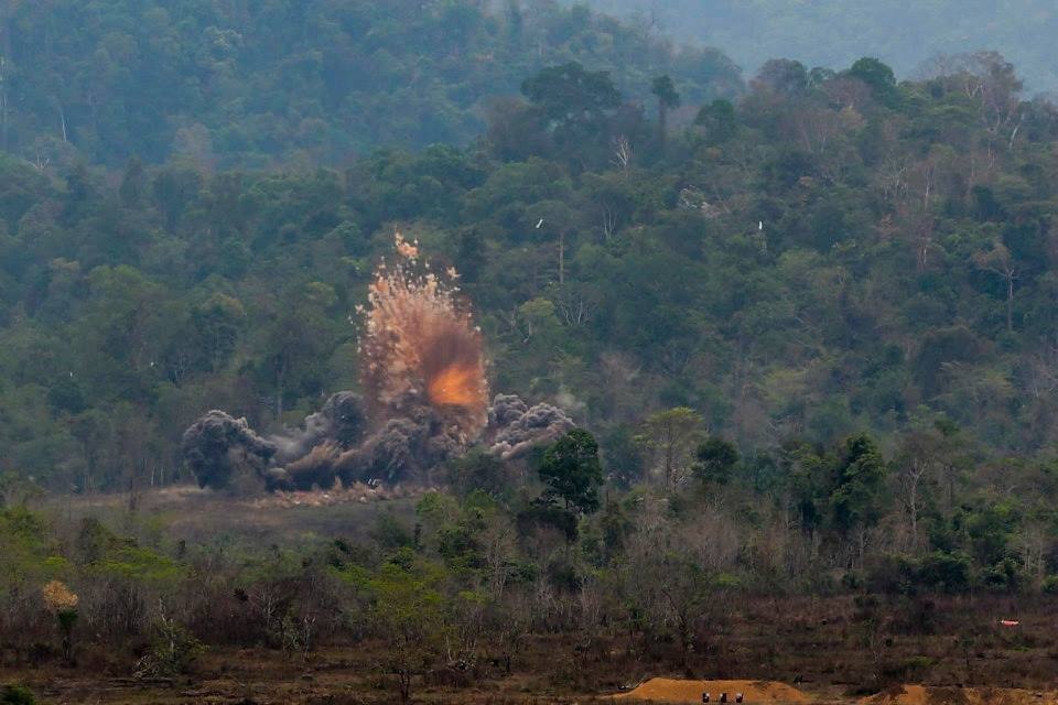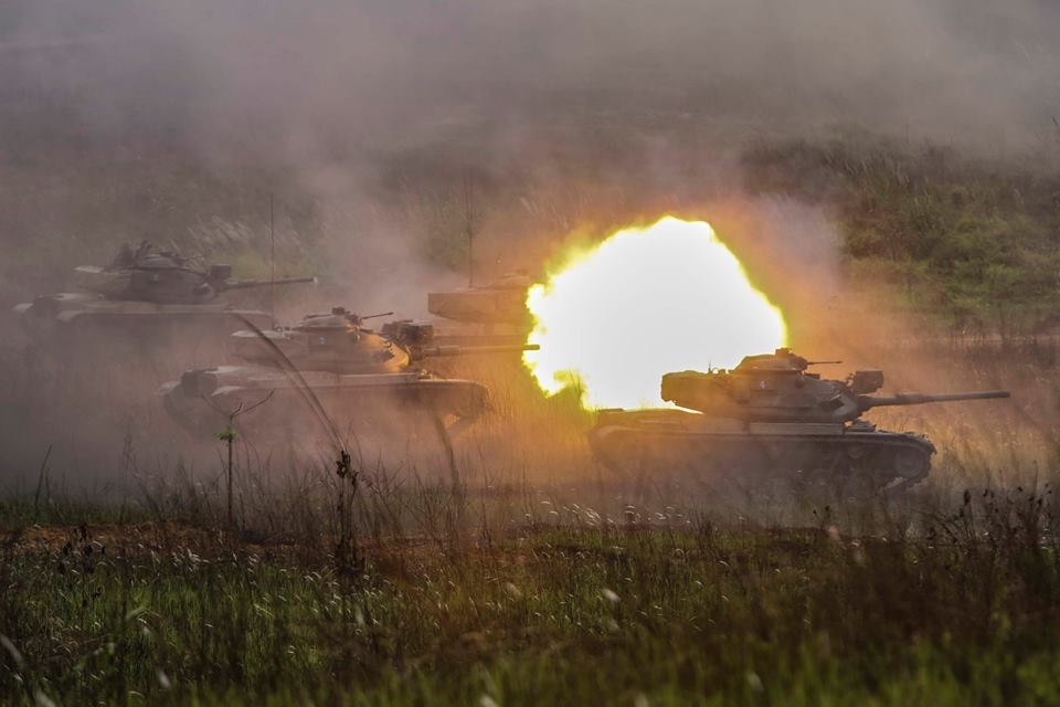 Xe tăng M60A1 của Thái Lan nhả đạn hôm 21/2/2014 tại Trung tâm Huấn luyện Ban Chan Krem. |