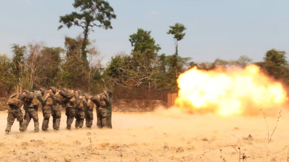 Lính Mỹ tập di chuyển trong khu vực có thiết bị nổ của kẻ thù tại Hổ mang vàng 2014. |