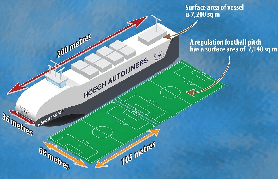 Tàu chở ôtô lớn nhất thế giới có 14 boong, có thể mang theo 8.500 chiếc xe hoặc số hàng hóa bằng khối lượng của 75 con voi trưởng thành.
