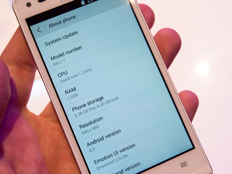 | Đáng tiếc là Ascend G6 được cài sẵn Android 4.3 Jelly Bean mà không phải là Android mới nhất 4.4 KitKat. |