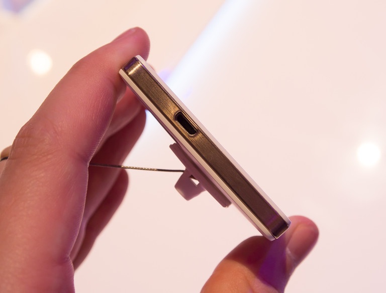 | Cổng kết nối microUSB được thiết kế nằm ngay trên viền kim loại và nằm ở phía dưới cùng của Ascend G6. |