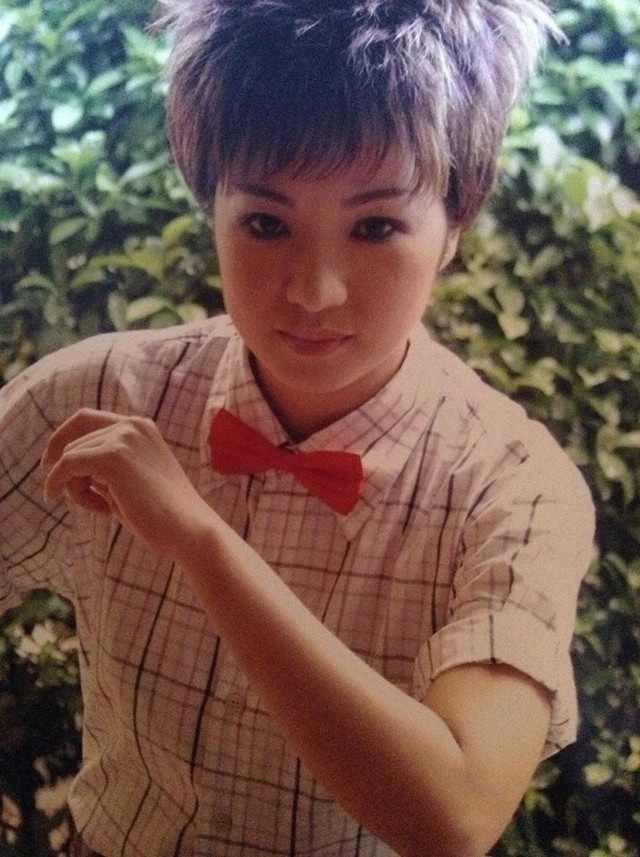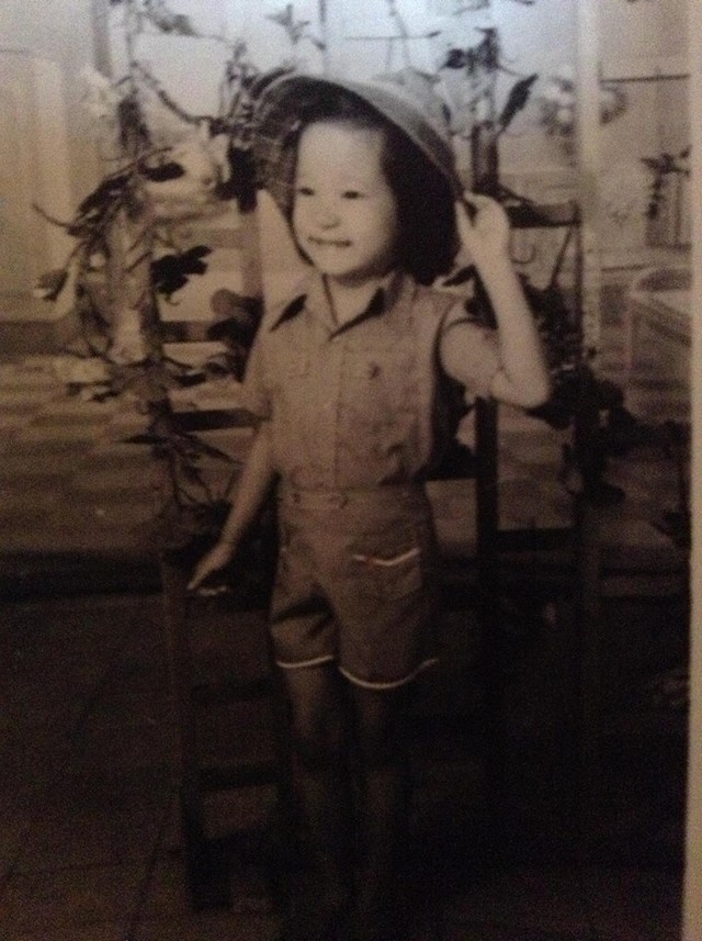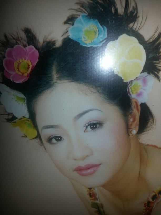 | Cô cũng có cả những hình ảnh kỉ niệm với phong cách làm đẹp thập niên 90 khá sến; tóc buộc hai bên, hoa cài đầu. |