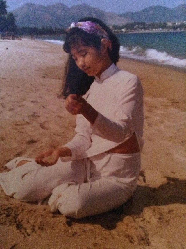 | Thúy Nga thướt tha tà áo dài khi còn là một thiếu nữ. |