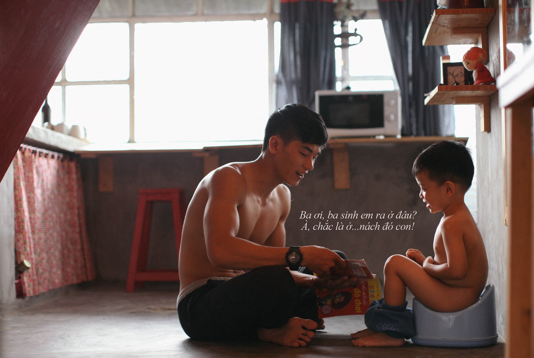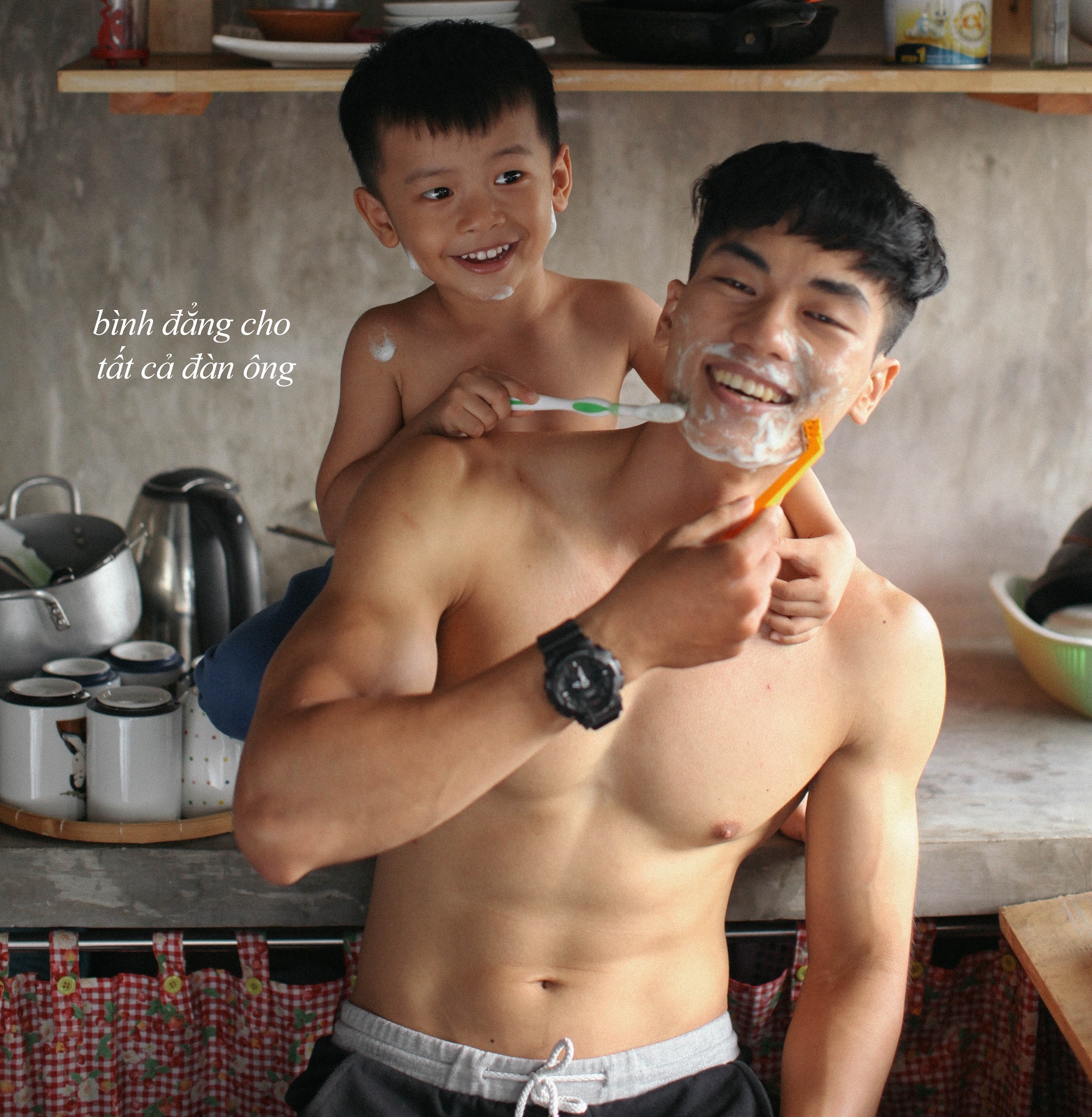 Ảnh bố đơn thân 9X khoe thân hình 6 múi bên con trai