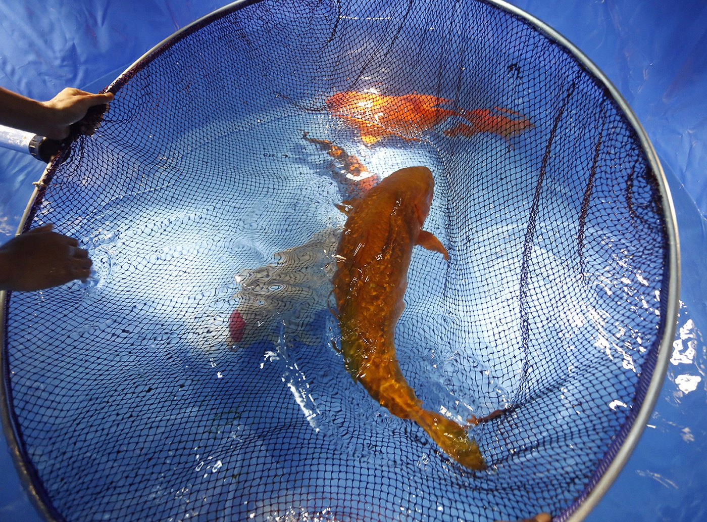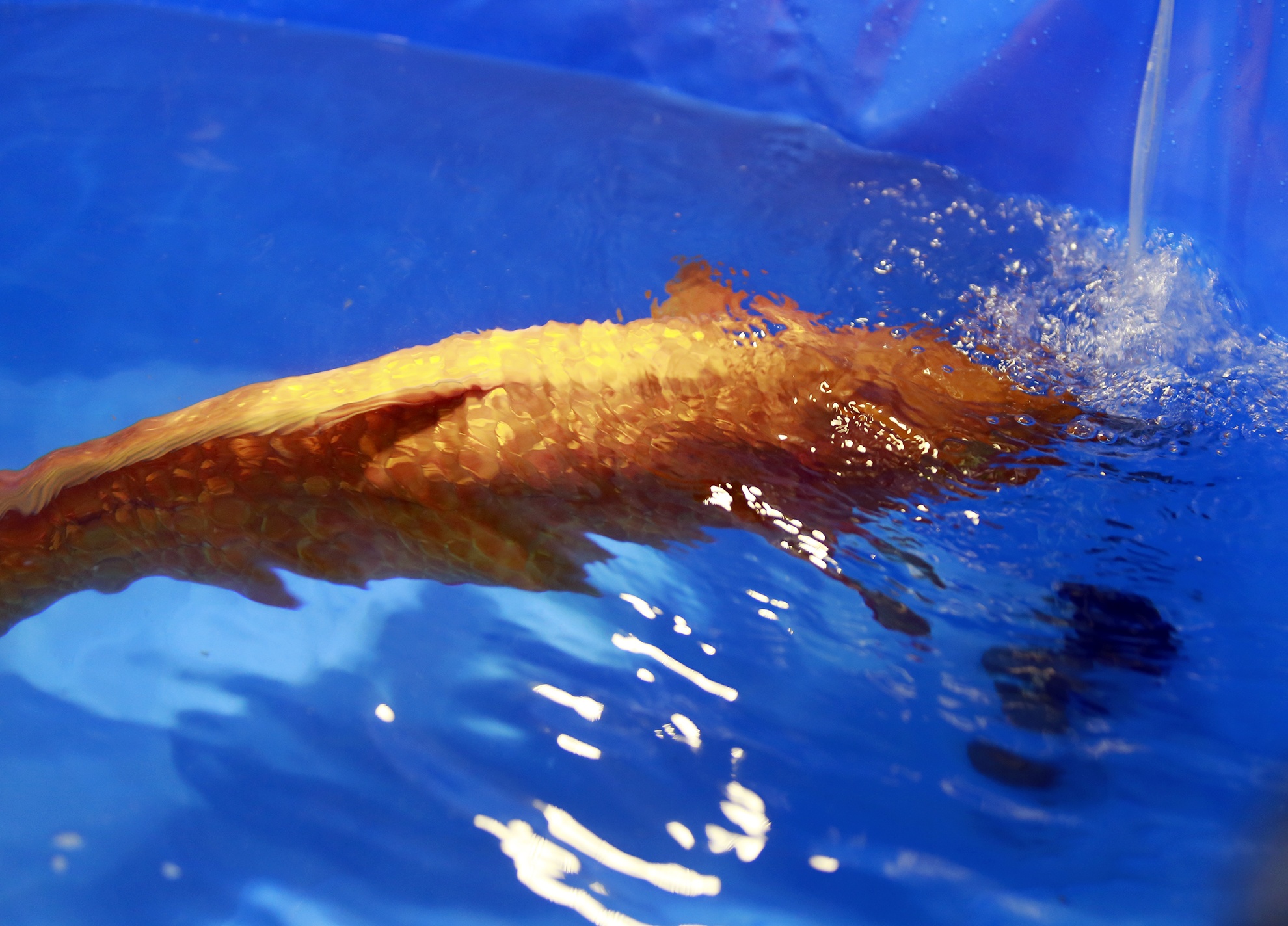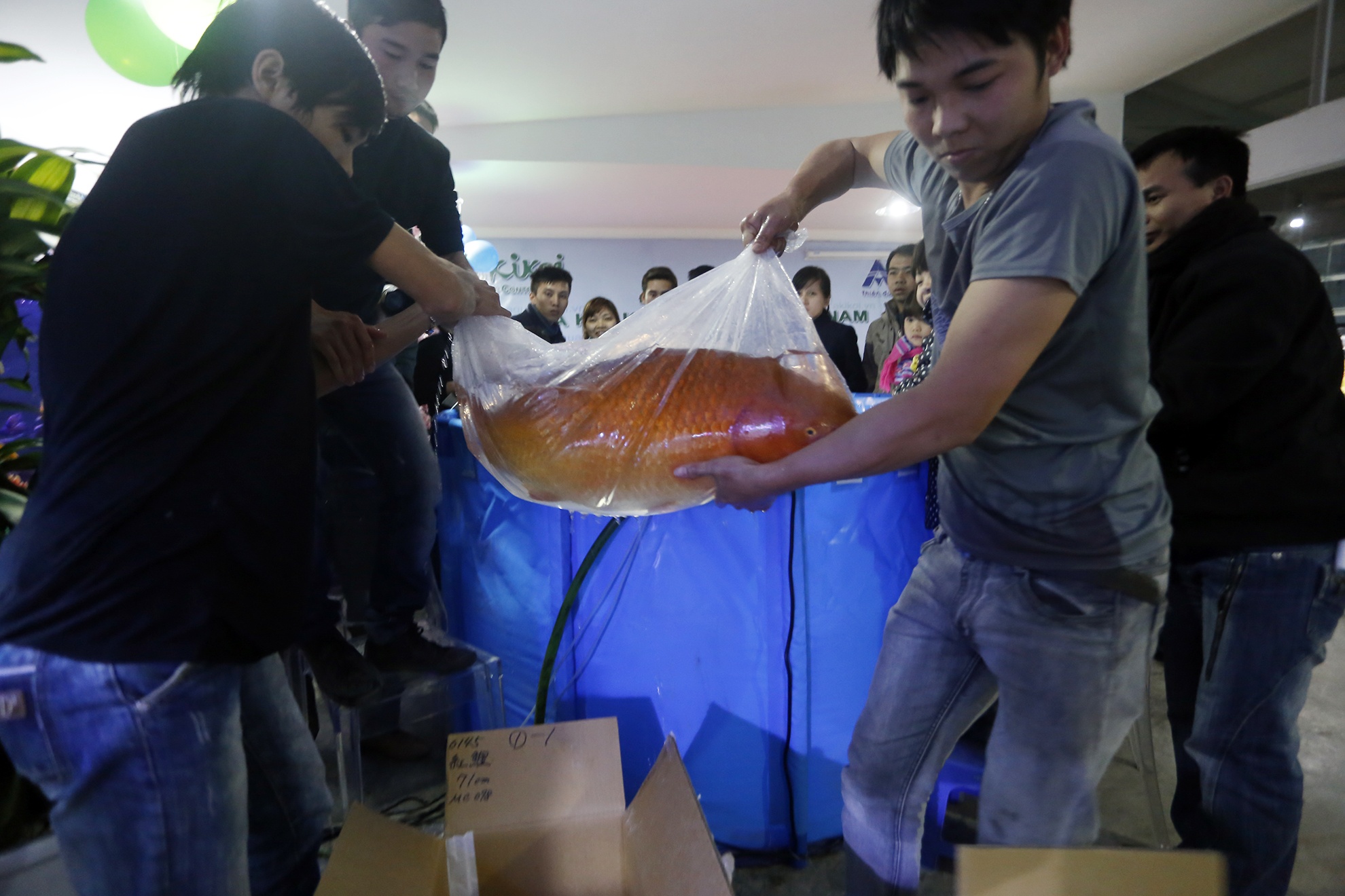 Các nhân viên của trung tâm Akikoi đưa Ginrin về ao cá của mình.