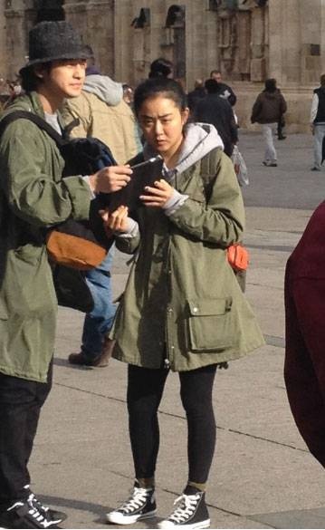 | Kim Bum và Moon Geun Young giản dị và mặc đồ đôi xuất hiện trên phố châu Âu. |