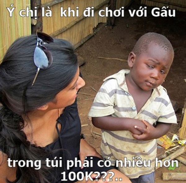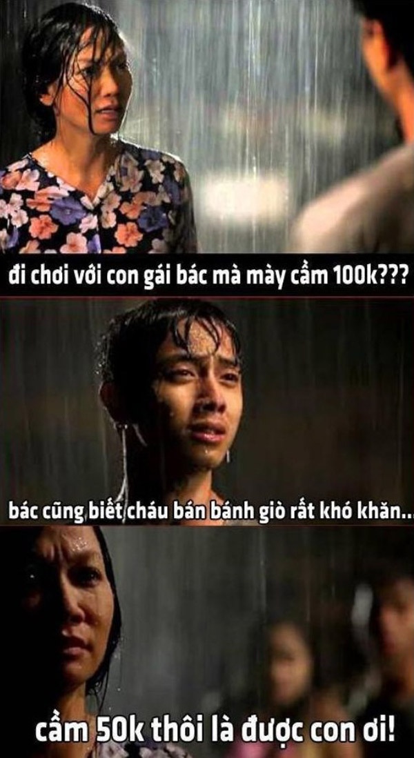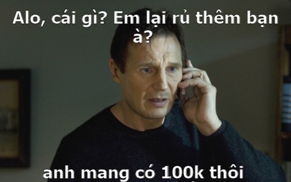 | Những mẫu đối thoại hài hước được lồng ghép vào hình của nhân vật nổi tiếng với mục tiêu chính là nhấn mạnh chi tiết chỉ mang theo 100k (100 nghìn đồng) khi đi hẹn hò khiến dân mạng hả hê. Câu nói của cô gái về tiền mới đây đã động chạm đến tự ái của nhiều chàng trai và họ quyết làm cho ra lẽ với vấn đề tiền - tình vốn đang là tâm điểm chú ý trong đời sống giới trẻ thời gian qua. |