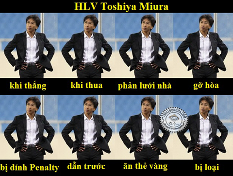 | Ông Miura không hề thay đổi thế đứng hay biểu lộ cảm xúc khác trong trận đấu. |