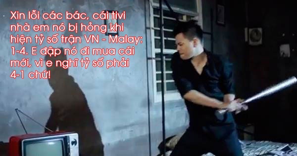 | Màn hình tivi là thứ mà người hâm mộ dễ trút giận nhất khi xem đội nhà thi đấu trong 45 phút đầu tiên trận bán kết lượt về AFF Cup 2014. |