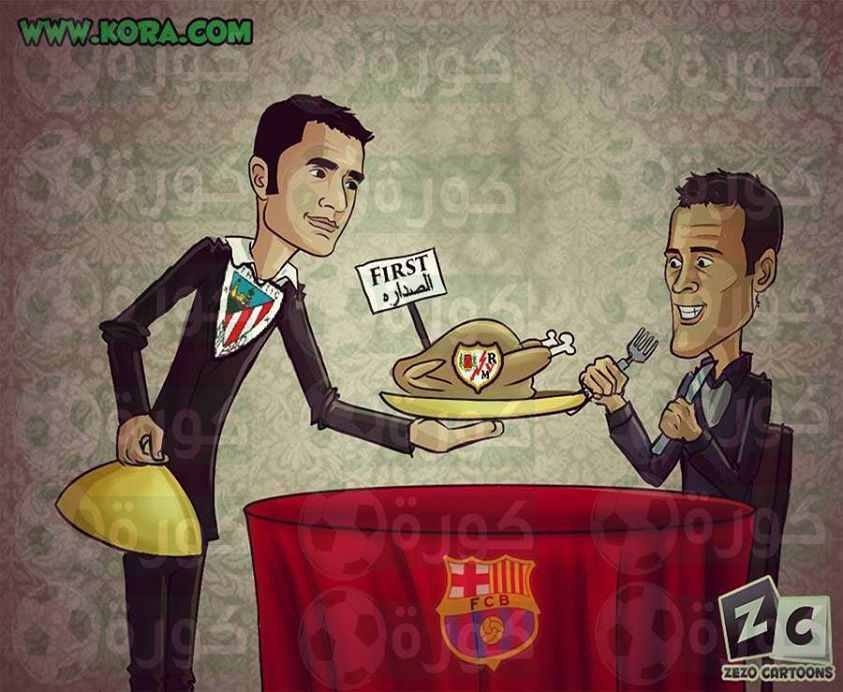 | HLV Paco Jemez của Vallecano đãi người đồng nhiệm Luis Enrique (Barca) một bữa tiệc bàn thắng thịnh soạn.