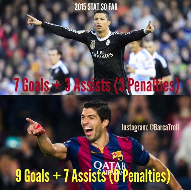 | Thành tích ghi bàn và kiến tạo của Ronaldo trong năm mới thậm chí không bằng Luis Suarez. |