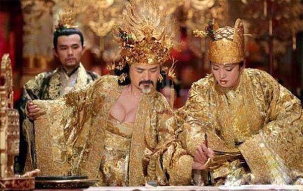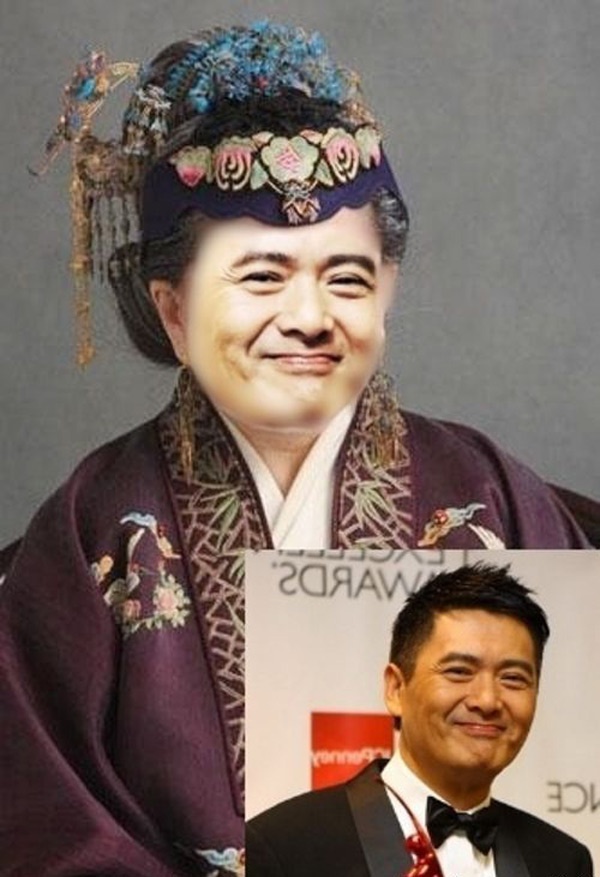 | Một bức ảnh khiến ai xem cũng bật cười khi Hoàng hậu mang gương mặt Châu Nhuận Phát, còn Hoàng đế có gương mặt Củng Lợi. |