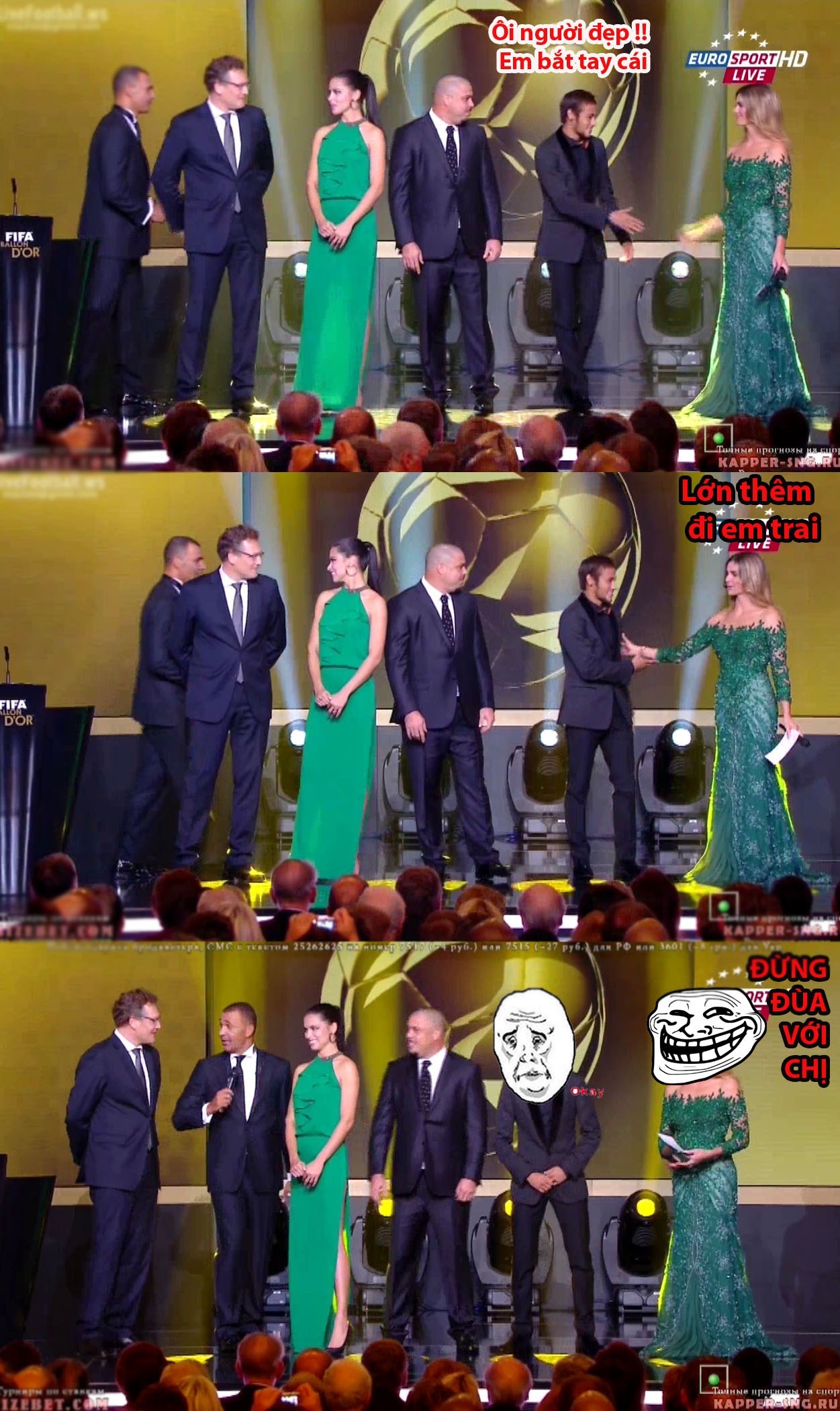 | Huyền thoại bóng đá Pele và chủ tịch FIFA bị ngập trong nước mắt của Ronaldo. |