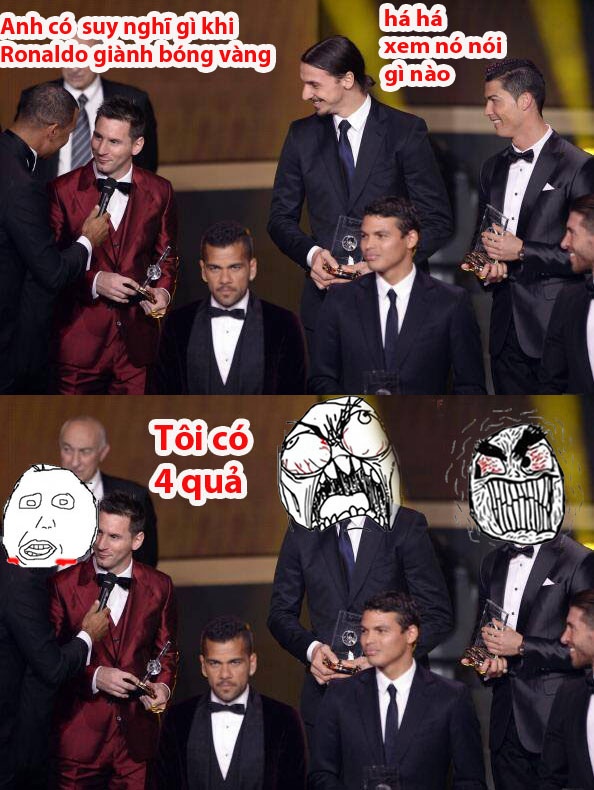 | Với việc đã giành được tới 4 quả bóng vàng thì việc Ronaldo lần thứ 2 bước lên bục cao nhất không có gì phải đáng lo ngại với cá nhân Messi. |