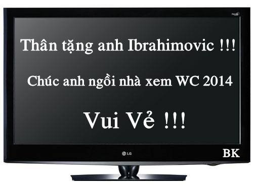 | Dù hai đội vẫn còn trận lượt về diễn ra trên đất Thụy Điển, nhưng nhiều người hâm mộ đã tặng một chiếc tivi để Ibra ngồi nhà xem World Cup 2014. Ibrahimovic gây thất vọng khi không thể đe dọa khung thành của ĐT Bồ Đào Nha. Trong khi đó, Ronaldo lại tỏa sáng với pha đánh đầu tầm thấp mang về chiến thắng cho đội nhà. |