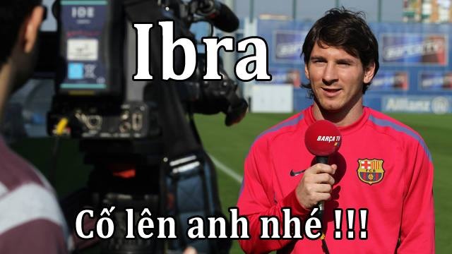 | Trước khi trận ĐT Bồ Đào Nha gặp Thụy Điển diễn ra, Lionel Messi - cầu thủ cạnh tranh Quả bóng vàng FIFA 2013 với Ronaldo - cổ vũ Ibra thi đấu đánh bại đội tuyển của CR7. |