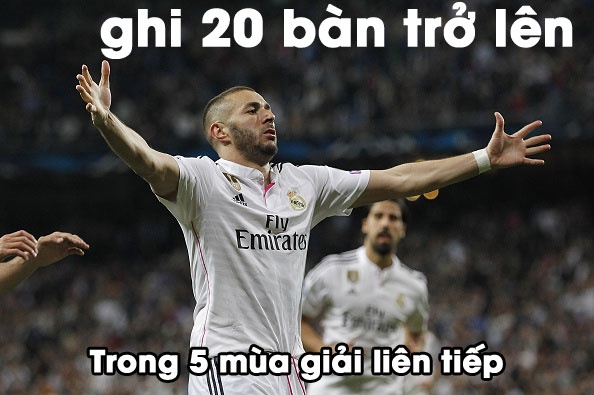 Karim Benzema chơi khá nổi bật tại Champions League mùa này với 6 pha lập công sau 7 trận. Nếu tính 5 mùa giải gần nhất, chân sút người Pháp đều ghi 20 bàn thắng trở lên.