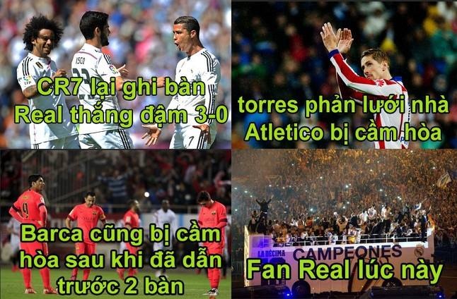 | Trong khi Real giành trọn 3 điểm từ tay Eibar, hai kình địch Atletico và Barca lại bất ngờ bị Sevilla và Malaga kìm chân với cùng tỷ số 2-2. Theo đó, cánh cửa tới ngôi vô địch La Liga mùa này lại mở ra với thầy trò HLV Ancelotti. |