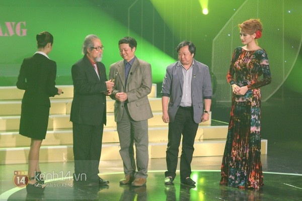 | Mr Đàm chỉ có thể cao hơn 2 mỹ nhân Hà Hồ và Thanh Hằng khi đứng trên một chiếc bục cao. |