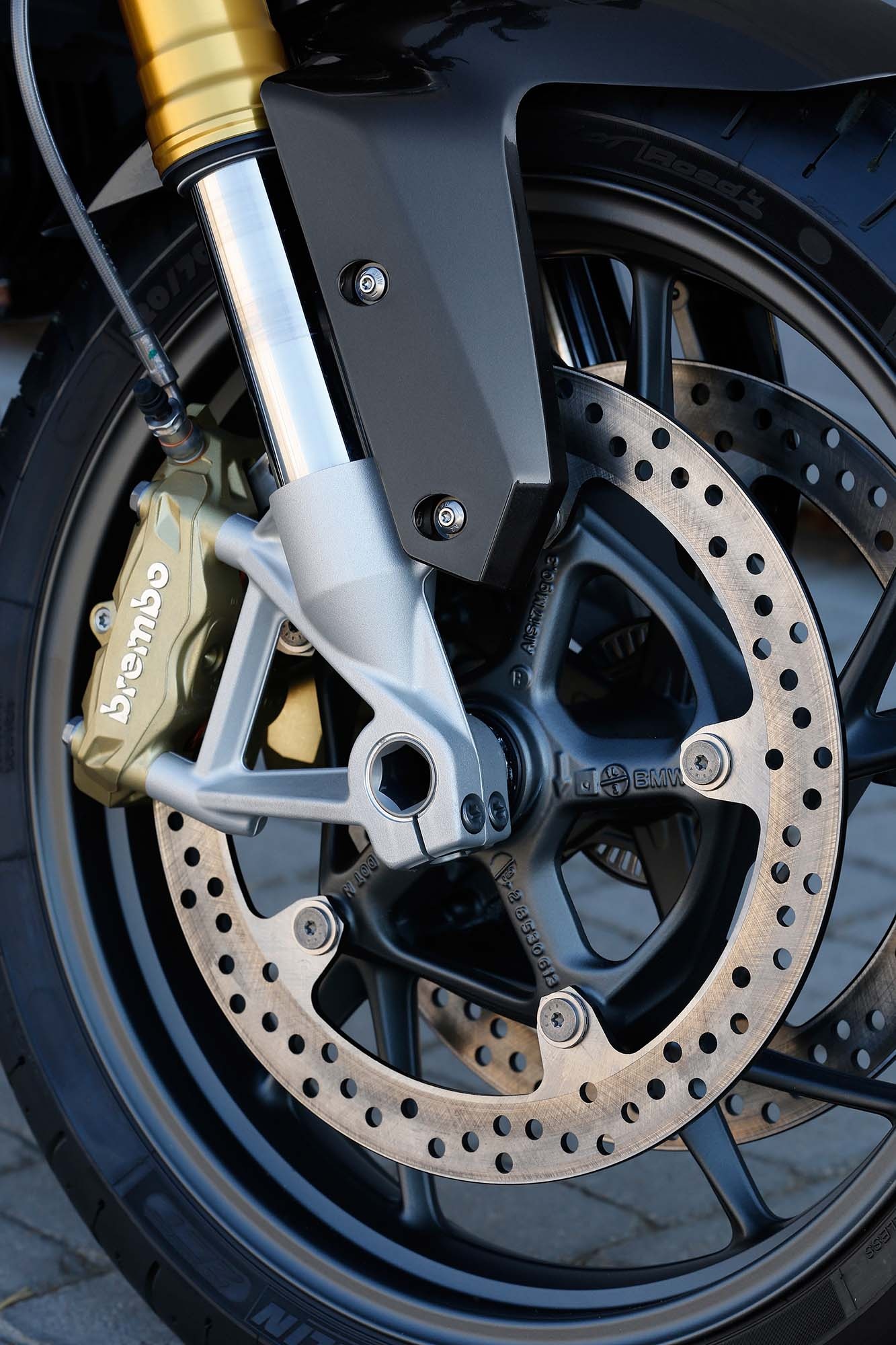 BMW R1200R 2015 sử dụng giảm xóc dạng hành trình ngược phía trước. Trang bị an toàn là phanh đĩa đôi đường kính 320 mm, tích hợp chống bó cứng phanh ABS. Bánh trước kích thước 120/70-ZR 17.